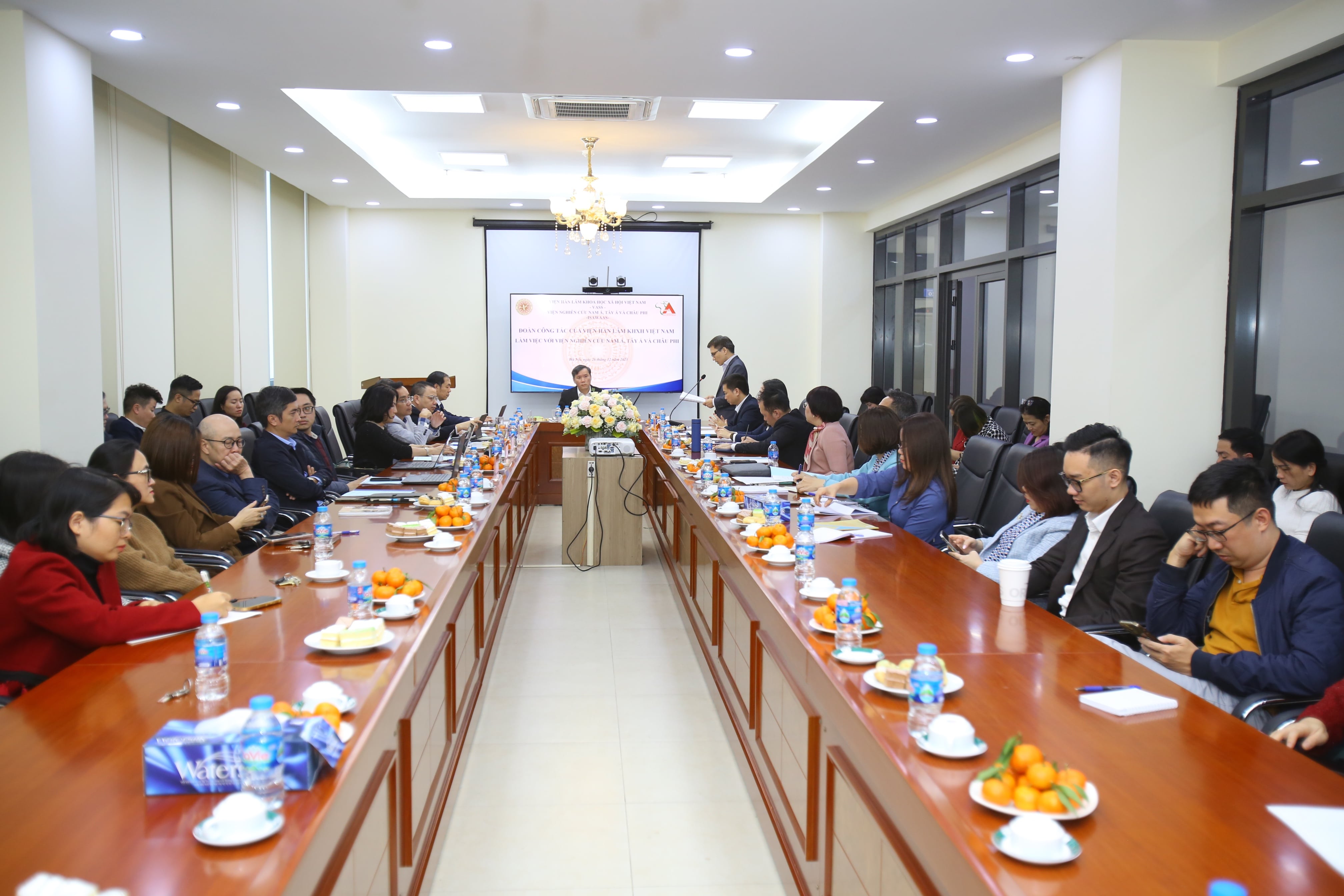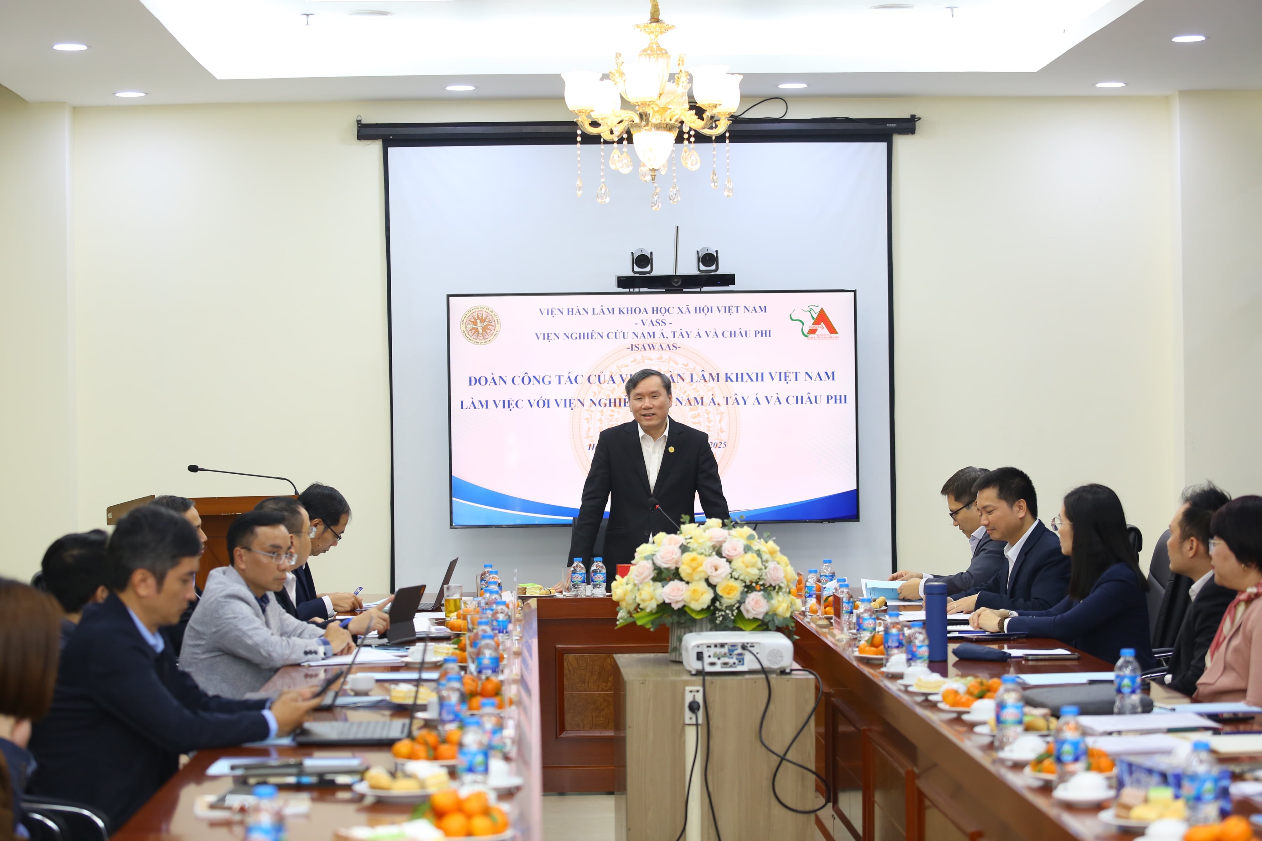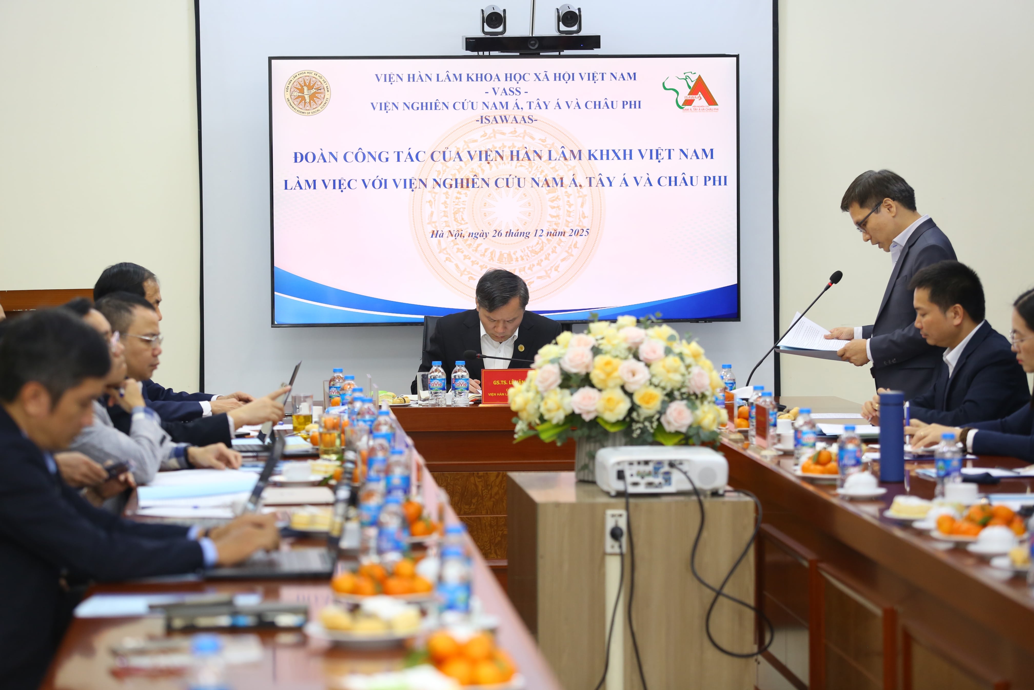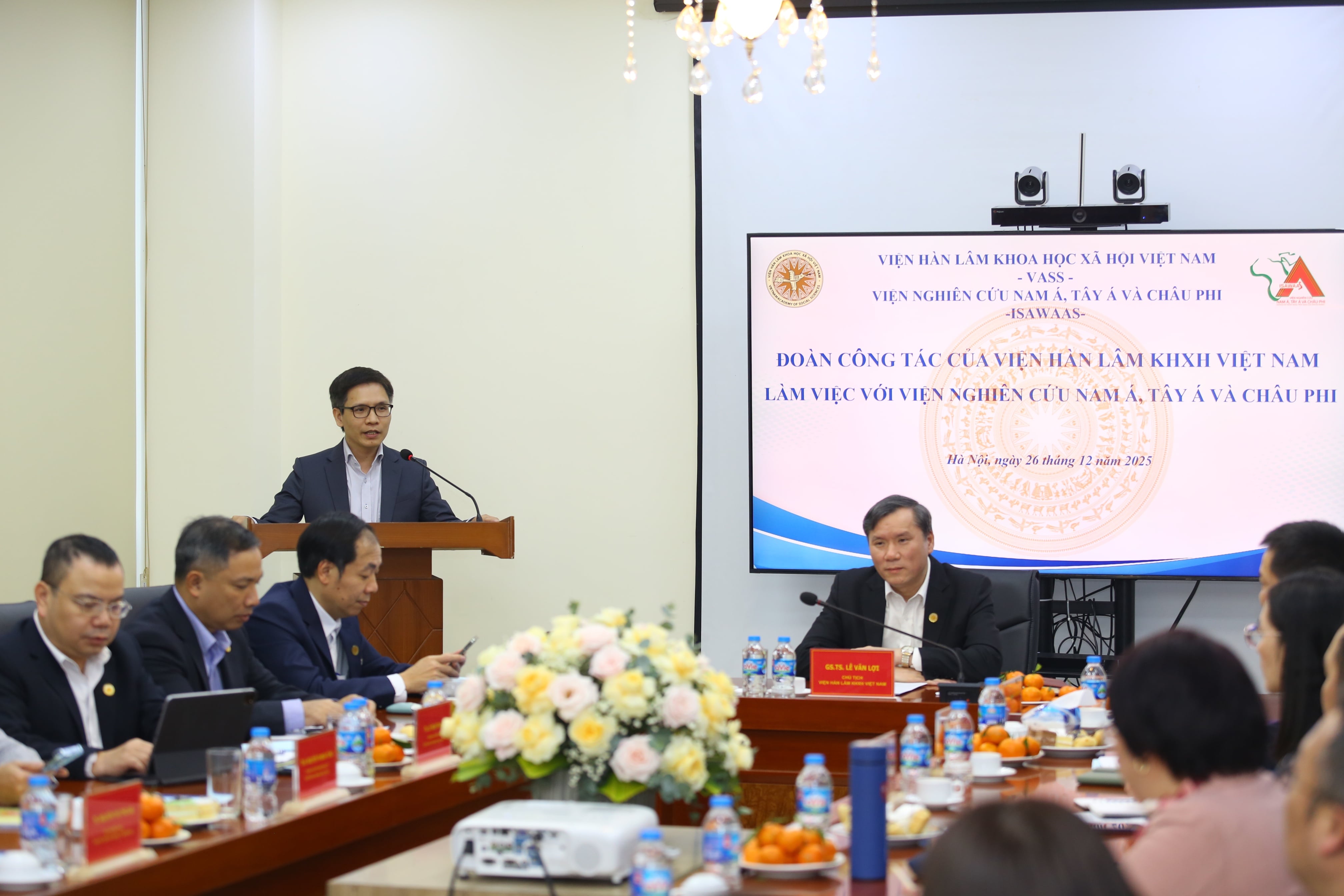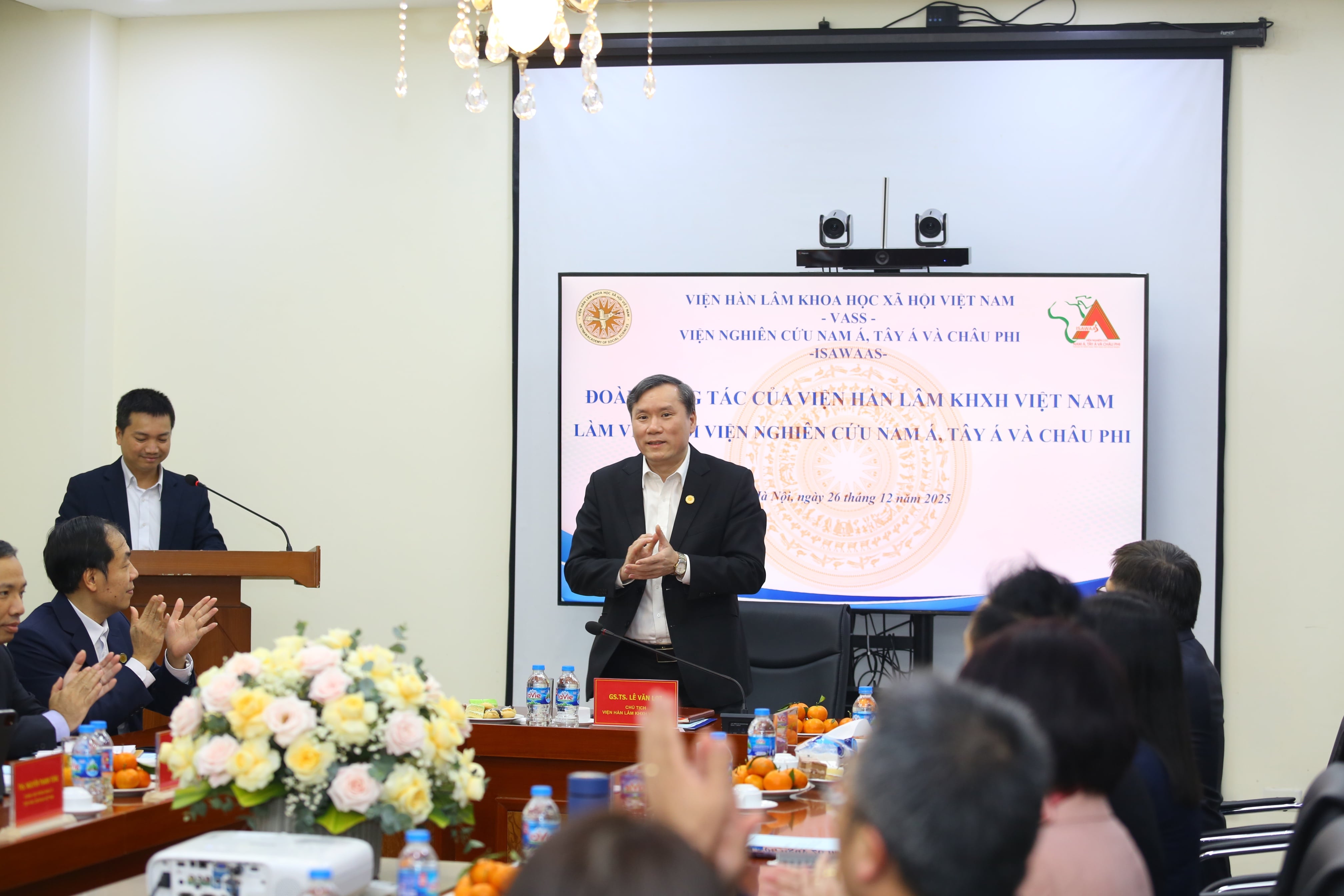 Trong buổi làm việc với Viện Nghiên cứu Nam Á, Tây Á và châu Phi (ISAWAAS) vào chiều ngày 26/12/2025 tại trụ sở 176 Thái Hà, GS.TS. Lê Văn Lợi, Bí thư Đảng ủy, Chủ tịch Viện Hàn lâm Khoa học Xã hội Việt Nam nhấn mạnh yêu cầu phải sớm xây dựng Chiến lược phát triển Viện giai đoạn 2026–2035, tầm nhìn đến năm 2045, coi đây là nhiệm vụ trung tâm, có ý nghĩa quyết định nhằm định vị rõ vai trò, nâng cao chất lượng nghiên cứu, tư vấn, phản biện chính sách, khẳng định vị thế của ISAWAAS trong hệ thống các đơn vị nghiên cứu quốc tế của Viện Hàn lâm và không gian học thuật quốc gia, quốc tế.