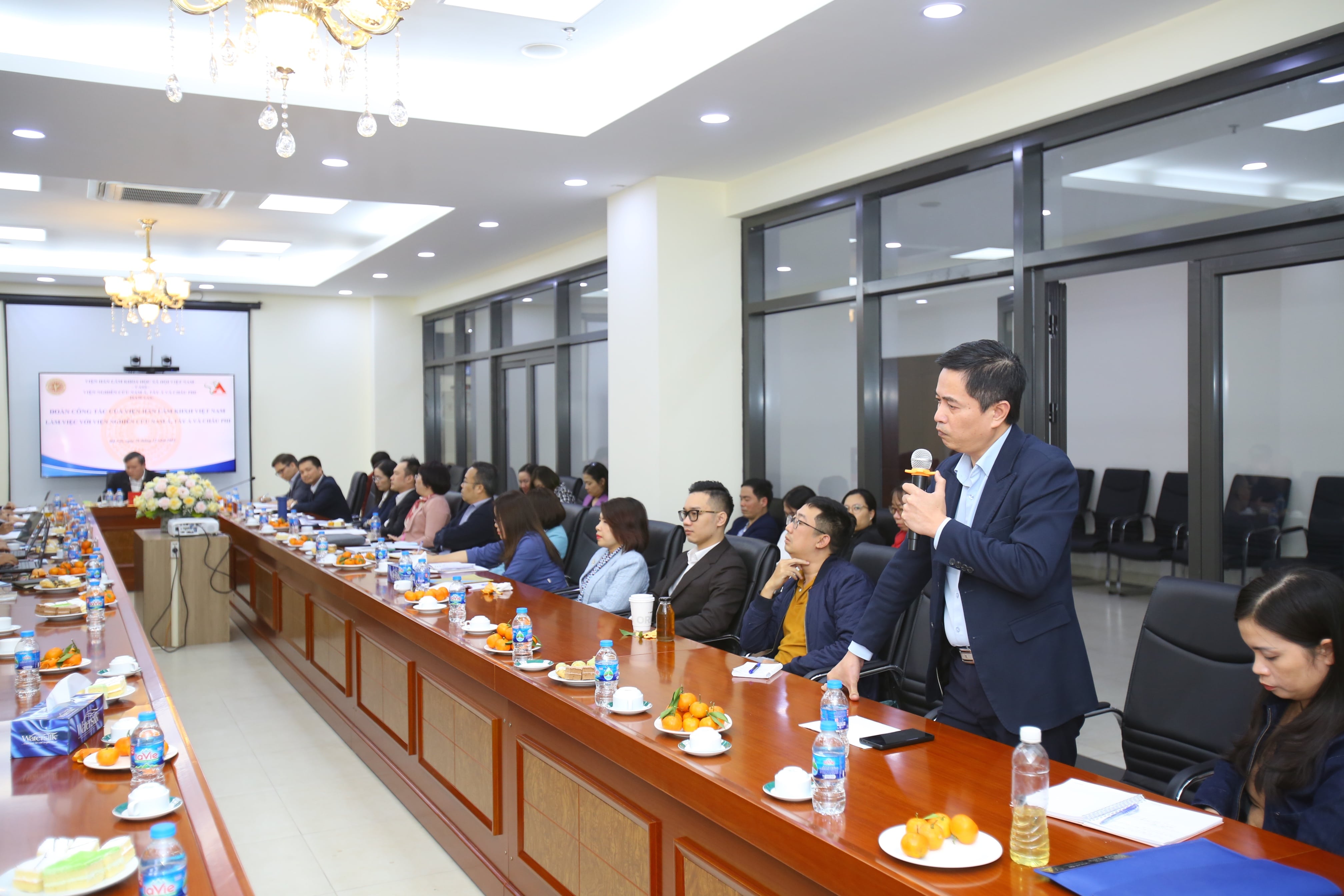 Đoàn Chủ tịch và cán bộ Viện Nghiên cứu Nam Á, Tây Á và Châu Phi chụp ảnh lưu niệm