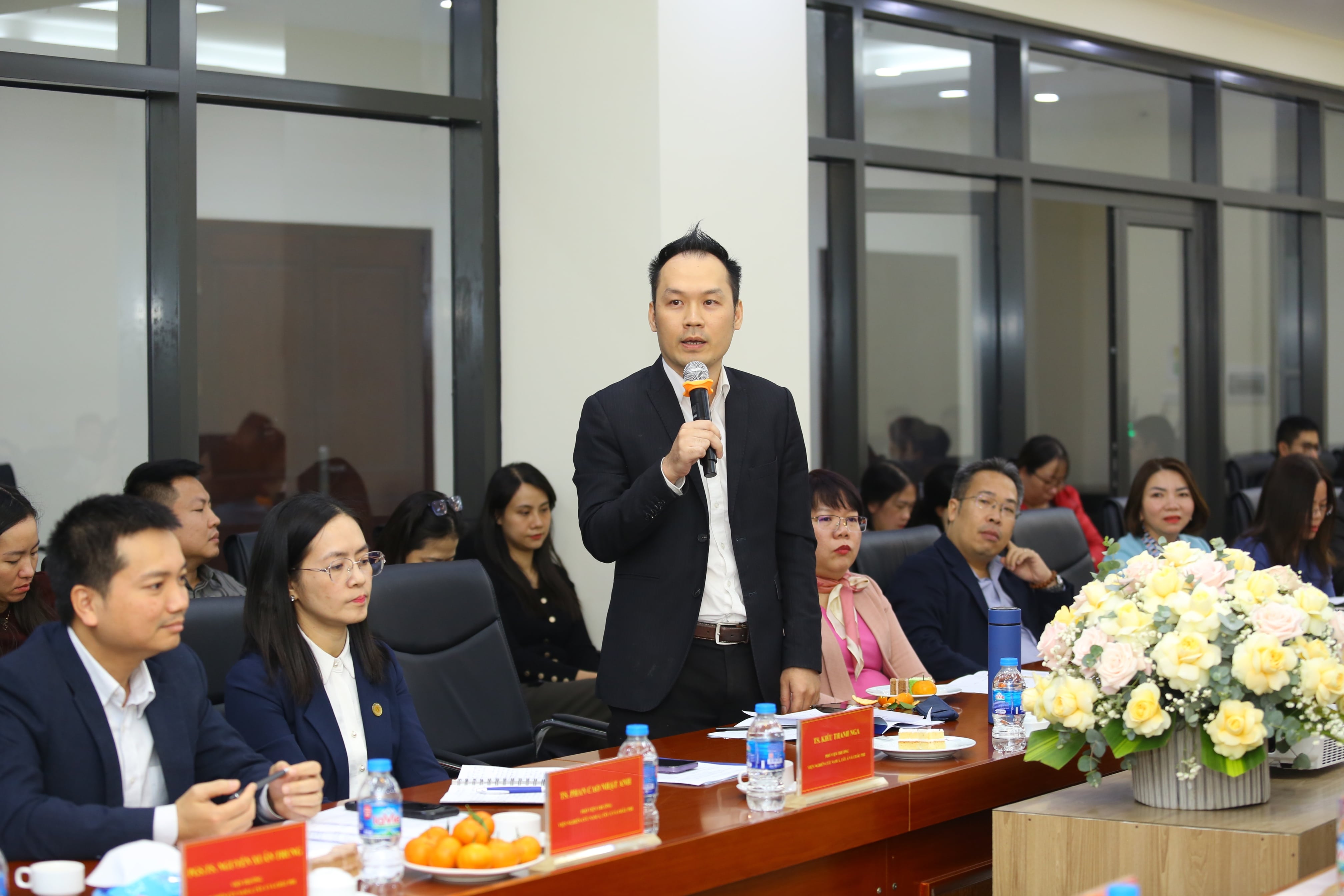 Thay mặt đơn vị, PGS.TS. Nguyễn Xuân Trung, Viện trưởng Viện Nghiên cứu Nam Á, Tây Á và Châu Phi, đã trình bày báo cáo tóm tắt kết quả công tác năm 2025 và giai đoạn hậu sáp nhập.