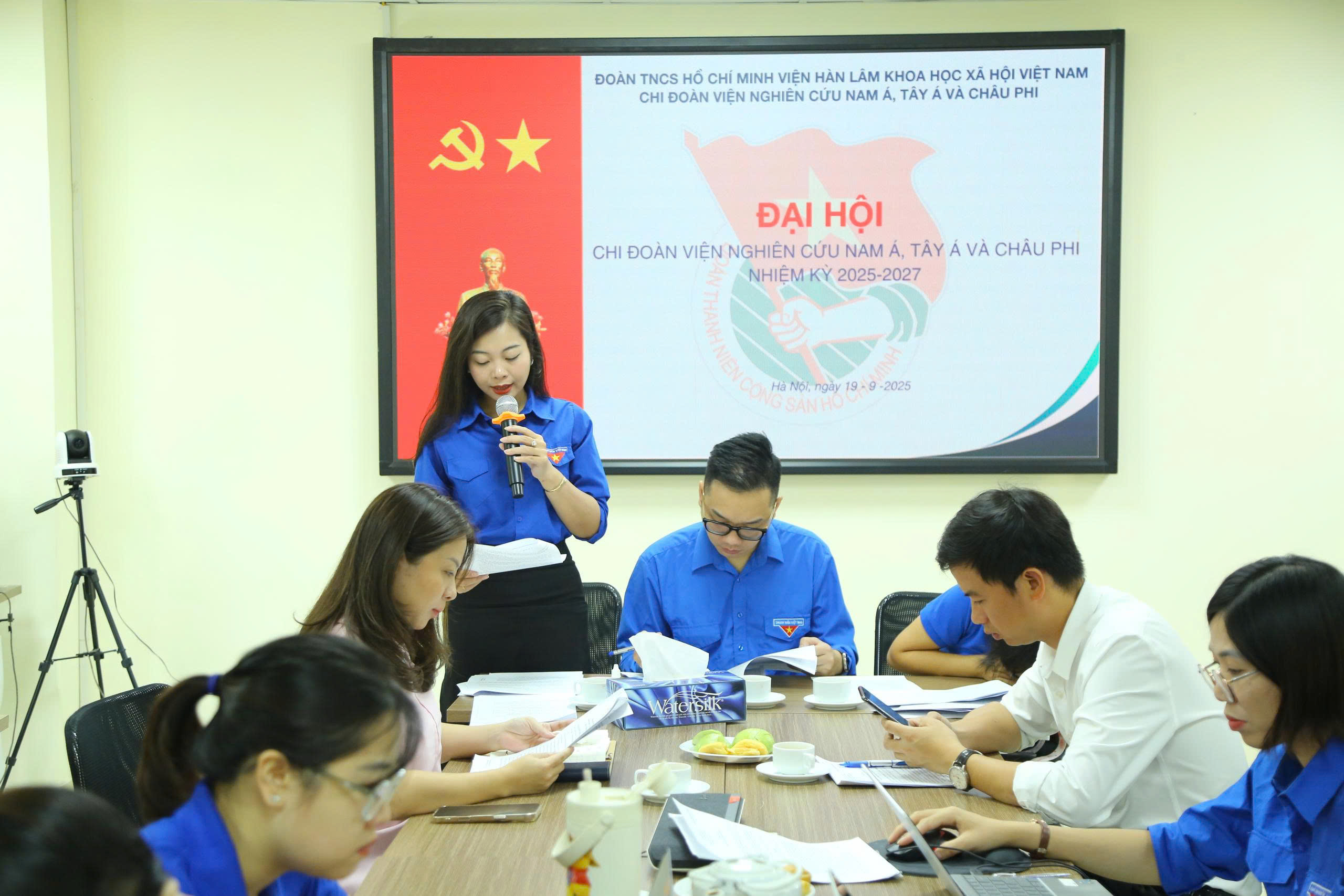 Trong đó, Đại hội đã tín nhiệm bầu ra Ban Chấp hành Chi đoàn Viện Nghiên cứu Nam Á, Tây Á và Châu Phi nhiệm kỳ 2025–2027 gồm 03 đồng chí:
