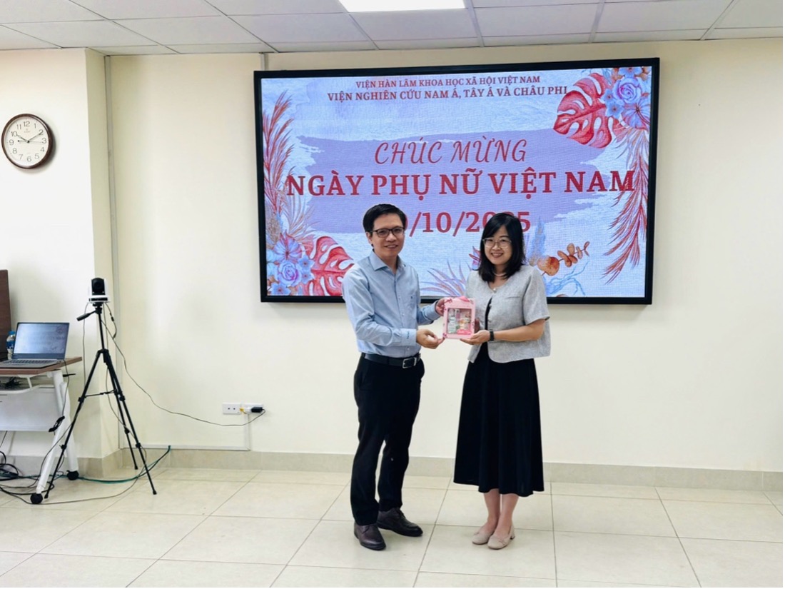 Sáng ngày 20/10, Viện Nghiên cứu Nam Á, Tây Á và Châu Phi đã tổ chức chương trình gặp mặt, liên hoan và tặng quà cho toàn thể nữ cán bộ viên chức, người lao động của Viện tại trụ sở 176 Thái Hà. PGS.TS Nguyễn Xuân Trung, Viện trưởng ISAWAAS đã chủ trì buổi gặp mặt.