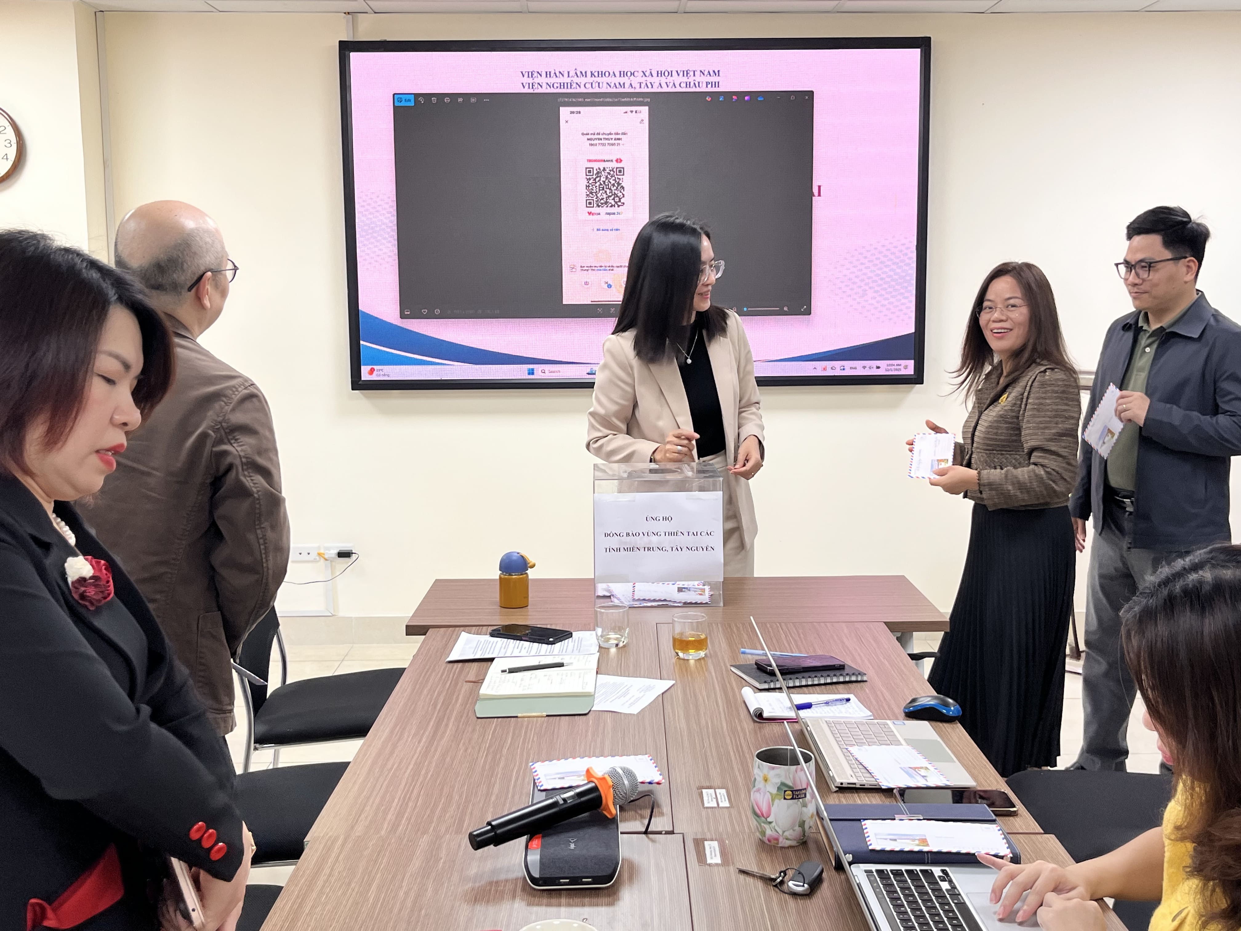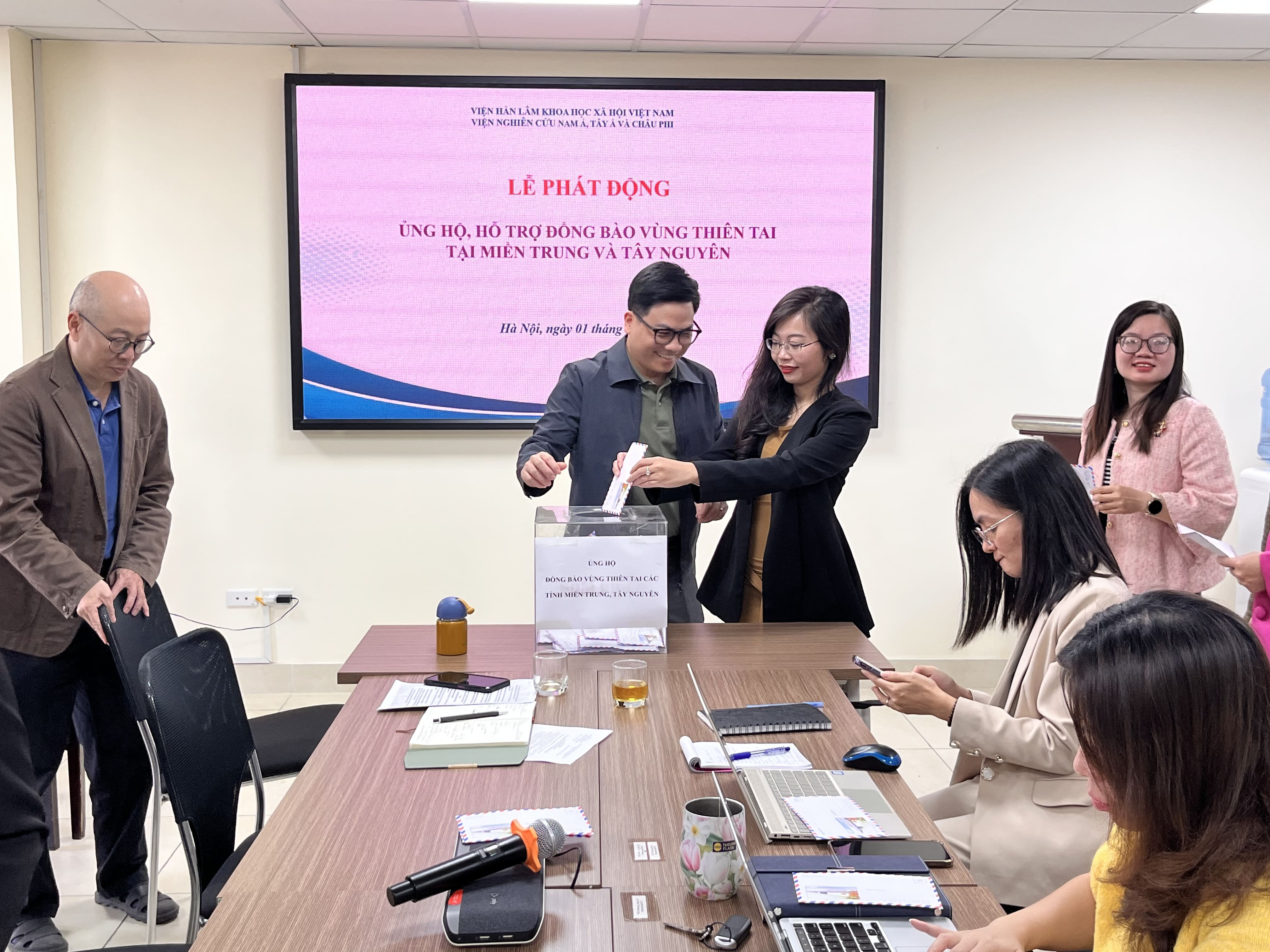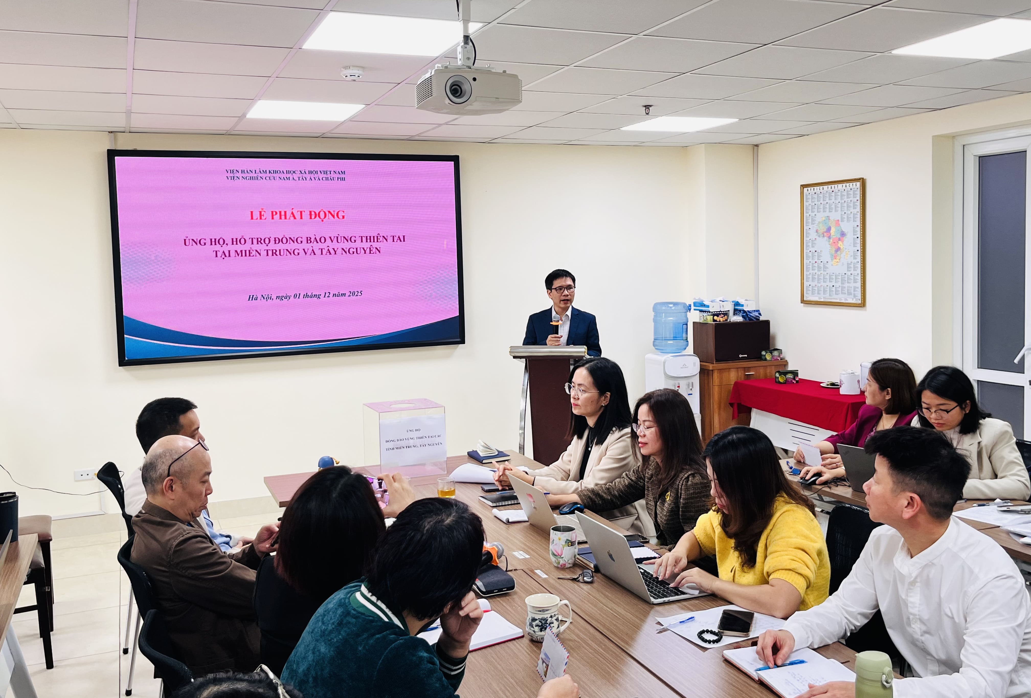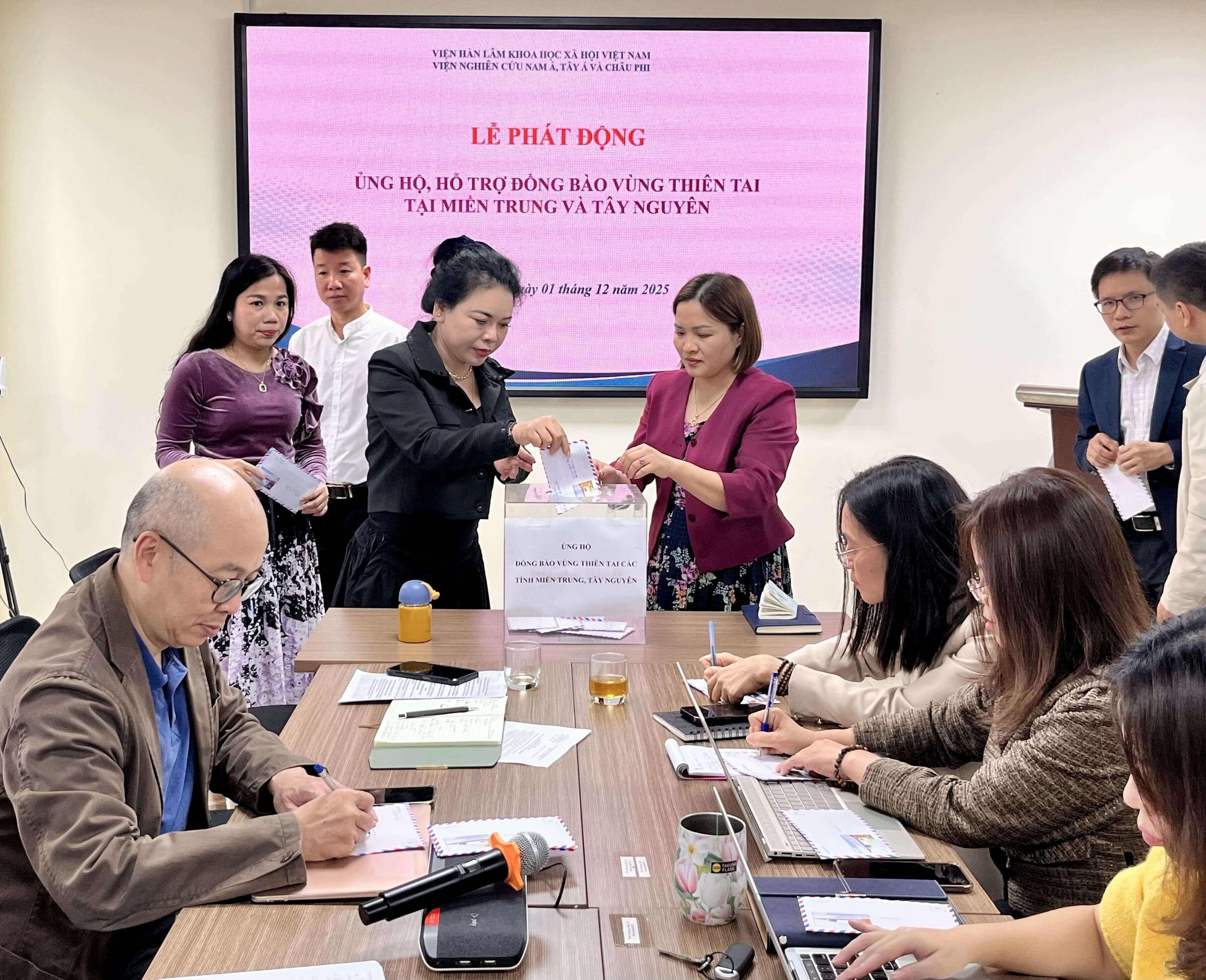 Sáng ngày 1/12/2025, tại trụ sở 176 Thái Hà, Viện Nghiên cứu Nam Á, Tây Á và Châu Phi đã tổ chức phát động quyên góp ủng hộ đồng bào khắc phục hậu quả nặng nề do bão số 13 gây ra.