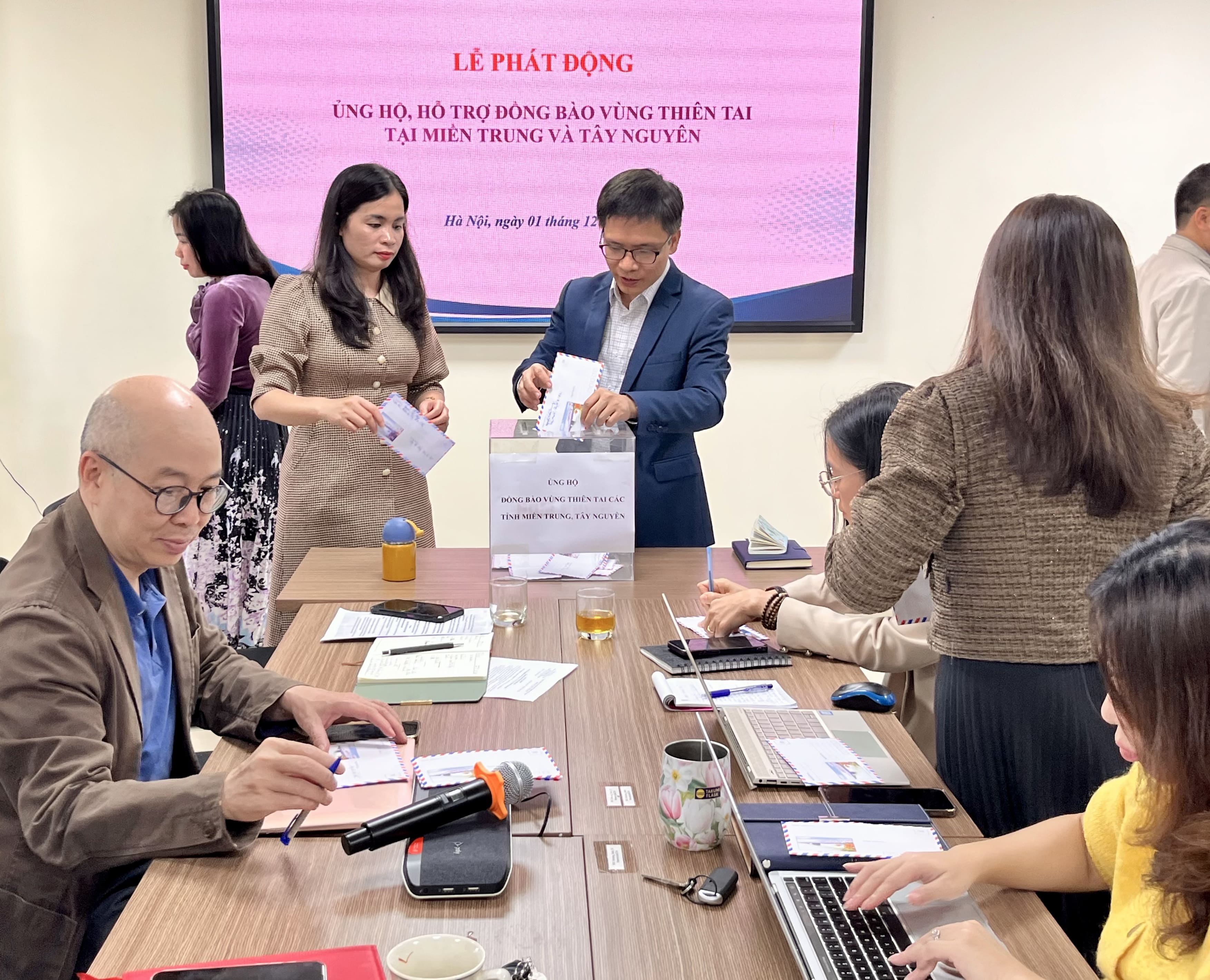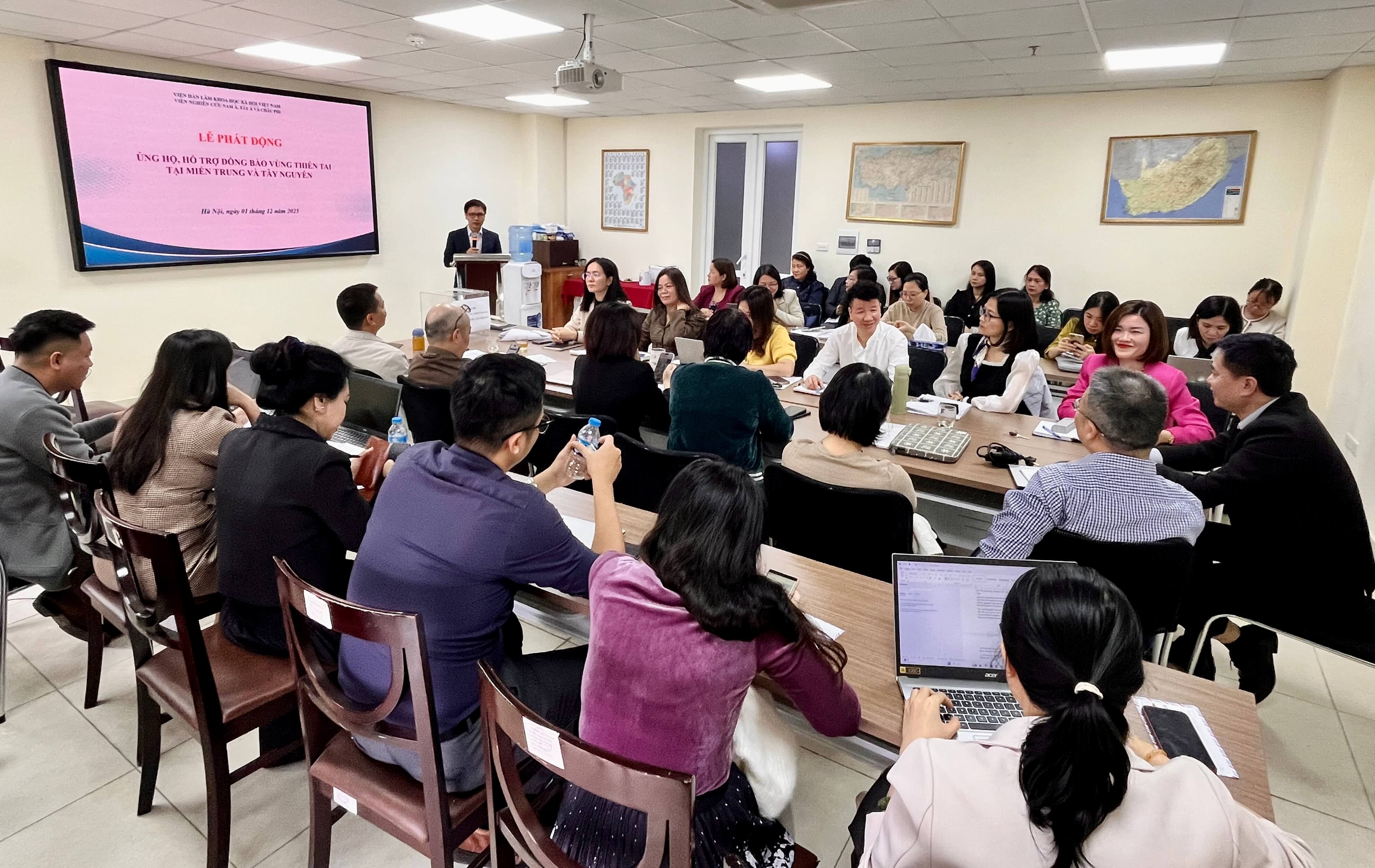 Thay mặt Ban lãnh đạo, Viện trưởng PGS.TS. Nguyễn Xuân Trung phát động phong trào quyên góp, kêu gọi toàn thể viên chức, người lao động phát huy truyền thống nhân ái, tích cực tham gia đóng góp, thể hiện tinh thần đoàn kết, trách nhiệm với cộng đồng. Ngay sau lời phát động, lãnh đạo và toàn thể cán bộ, viên chức, người lao động đã trực tiếp ủng hộ một ngày lương, gửi gắm tấm lòng sẻ chia qua từng phong bì, lá thư quyên góp, qua đó phát huy truyền thống “tương thân tương ái” và “lá lành đùm lá rách” của dân tộc, cũng như kịp thời chia sẻ những khó khăn của người dân bị thiệt hại do bão và sớm ổn định lại cuộc sống. Số tiền ủng hộ được thông qua Viện Hàn lâm Khoa học xã hội Việt Nam chuyển kịp thời đến tận tay đồng bào các vùng chịu thiệt hại.